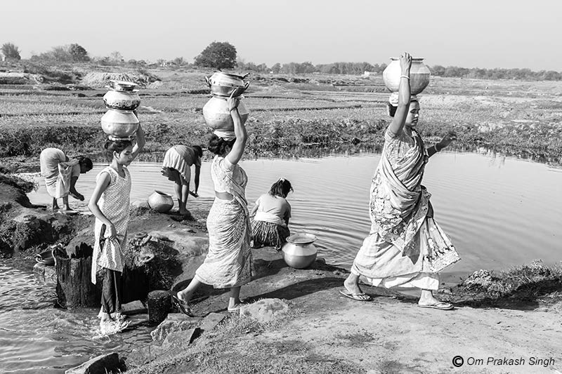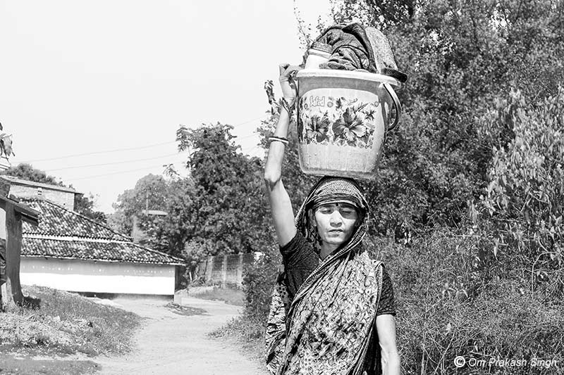 Heading towards the village pond to wash clothes and bathe in Seraikela-Kharsawan district