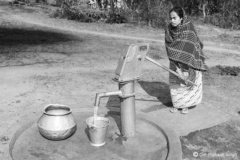 Collecting water from a community handpump in Seraikela-Kharsawan district