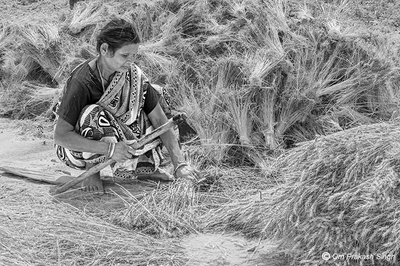 A rural woman engaged in post-harvest agricultural work in Latehar district