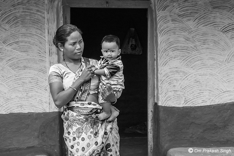 A PVTG woman beneficiary utilizing her saved time in childcare in Latehar district