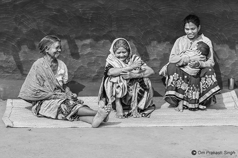 Women in a JJM-benefited neighborhood enjoying leisure time together in Latehar district