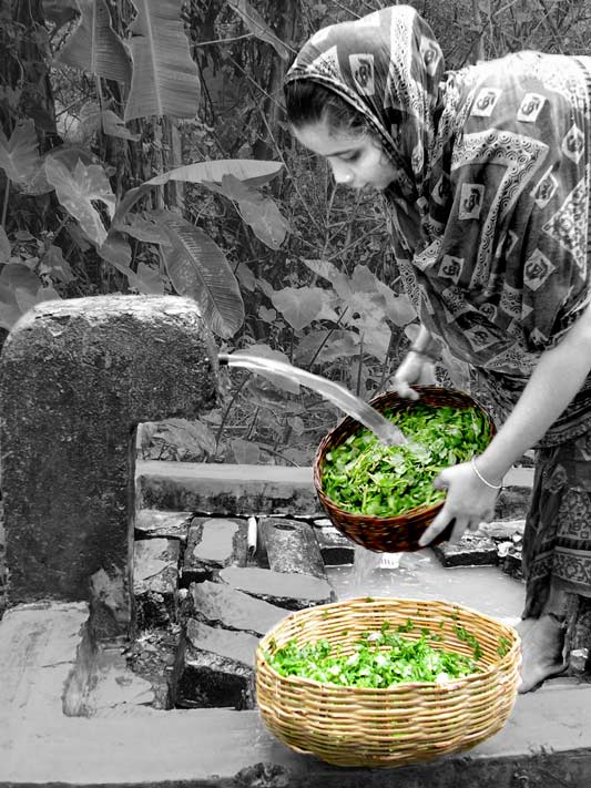 Treated piped water from the Ganges being used for cleaning vegetables in an arsenic affected village in South-24 Parganas district, West Bengal
