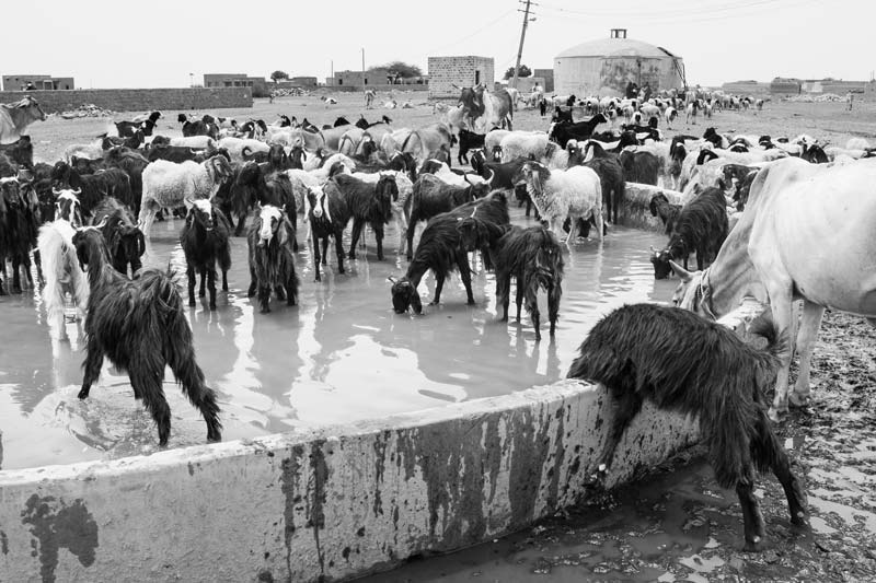 Animals drinking water supplied by the Indira Gandhi Canal under a multi-village rural water supply scheme in Jaisalmer district, Rajasthan