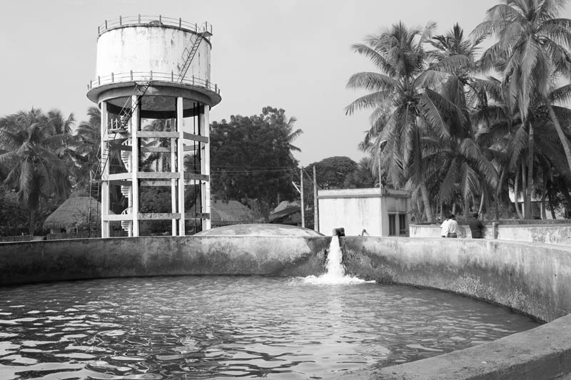 Women, men and children living in rural India encounter multifarious challenges in accessing adequate and safe drinking water as outlined in the story “Rural Drinking Water Challenges” dated 16 June 2017. In order to address these challenges, the government has initiated several interventions. The first and major one was started in 1972-73 as the Accelerated Rural Water Supply Programme (ARWSP), succeeded by Swajaldhara in 2002 that promoted community participation in planning, implementation and management of schemes. ARWSP was revised in 2009 and merged with Swajaldhara as the National Rural Drinking Water Programme (NRDWP) which has a special focus on supporting rural water supply in water-stressed and water quality affected areas. As reported by the Ministry of Drinking Water and Sanitation (MDWS), Government of India (GoI) on 14.07.2016, out of a total of 1,714,528 rural habitations, 1,307,948 (76.15%) are “fully covered” (FC), 335,687 (19.58%) are “partially covered” (PC), while 70,893 (4.13%) are “quality affected” (QA). A FC habitation has 100% of the population with access to adequate quantity and quality of water, while a QA habitation has water quality problems due to contaminants like arsenic, fluoride, iron, nitrate and salinity. A PC habitation must meet national water quality standards even if it has <100% of the population covered. In addition, ‘coverage’ also means that a drinking water source should be able to supply at least 40 liters per capita per day (lpcd) and be located within 1600m in the plains and 100 meters elevation in hilly areas. The FC and PC together imply ‘coverage’ of 95.87% rural habitations with access to safe drinking water from an improved source, primarily tap, handpump, tubewell or covered well. In addition, recently the government has adopted a strategic shift towards piped water supply with an upgraded service level of at least 55 lpcd within premises or at a horizontal or vertical distance of not >100 metres. However, despite all the appreciable efforts, “slippage” is a significant problem primarily due to deteriorating source sustainability in terms of quality or quantity, or technical failures and operational hurdles. Slippage as well as non-existence of safe sources within close proximity of the residence prevents women, men and children from enjoying their human rights to water, health, education, livelihoods and overall socio-economic development, and significantly thwarts sustainable development of rural communities. This photo story aims to present critical reflections over governmental efforts at facilitating rural communities with access to adequate and safe drinking water in India. The title photo depicts a piped rural water supply plant in West Godavari district, Andhra Pradesh.