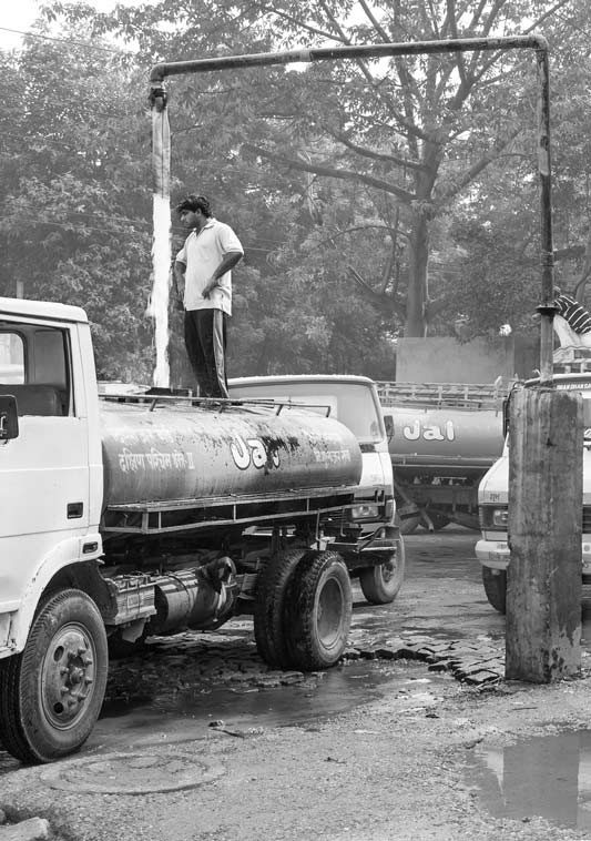 The site of the water tanker brings a sigh of relief to the residents of the informal colonies served exclusively by them. However, according to the Comptroller and Auditor General (CAG) report (2013), about a quarter of the households in the city that are being supplied water through tankers in the absence of pipelines, have an average per capita supply of only 3.82 liters per day against the prescribed norm of 172 liters. This shows that tanker allocation versus the demand is grossly underestimated. This leads to great rush, struggle and even conflicts at the tanker venue and a tanker containing up to 9000 liters is siphoned off within minutes, with some even forced to return home empty-handed.
