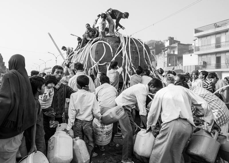 Women, men and children rushing to secure their share in the tanker water supply in South-East District, National Capital Territory of Delhi