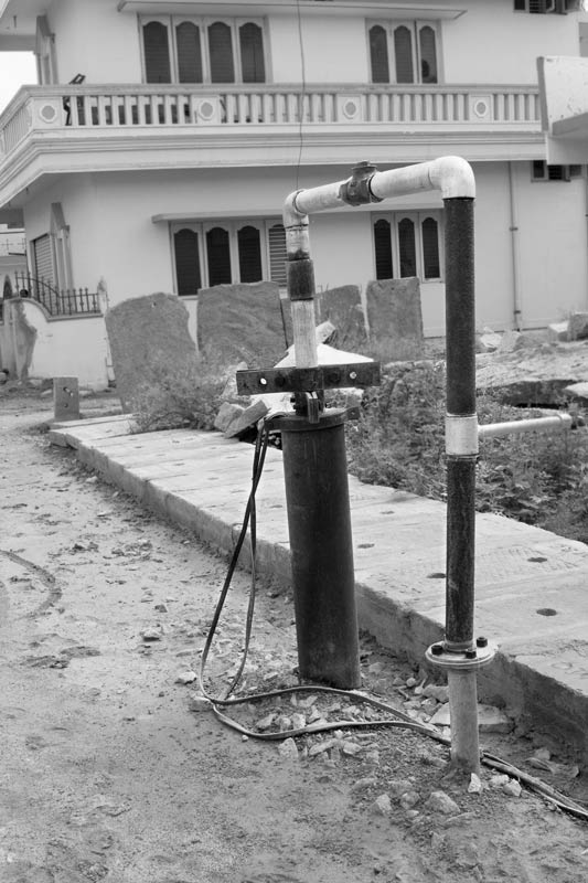 In this newly planned colony in Kolar city, water supply for the residents has been provided by the government through tubewells. The tubewell shown here has been installed for supplying drinking water but the quality of the supplied water has not been monitored. The water is saline and also contains high fluoride levels, making it unsuitable for drinking. Consequently, while this tubewell water can be used by the residents only for washing, bathing, cleaning and other non-consumptive uses, but drinking water needs to be additionally purchased by them from alternate safe sources, mainly tankers, adding financial burden. Such instances are entered in official records as 'coverage' with drinking water supply, but in reality these amount to denial of the human right to water.