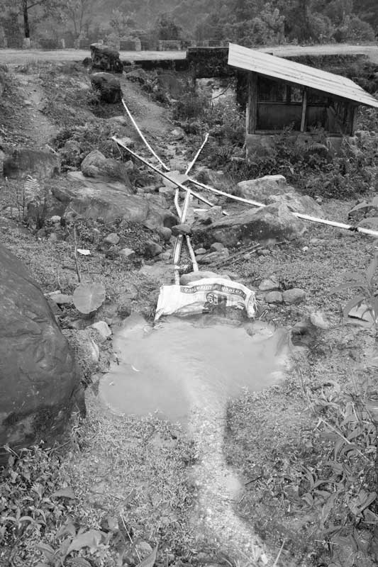 Though the government's intervention of piping the stream waters helps improve coverage, a vital question that however arises is how safe is this supply water? This photo amply clarifies that the source of the piped water going to schools and houses is open and unprotected. This makes the water quality unsafe as it may contain sediments, worms, insects, microbes and other impurities from the surroundings. This water is directly supplied to the users without any treatment, leading to prevalence of water-borne diseases among schoolchildren and adults. This results in absenteeism from school because of illhealth, keeps adults away from work, and increases medical bills.