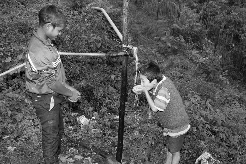 In Arunachal Pradesh, a hill state in North-Eastern India, the discharge in the streams and rivers is generally very high. This has been utilized by the government to facilitate urban populations with access to drinking water by directly piping the local stream waters. Such piped water supplies not only reach the urban residential colonies but are even extended to schools and other public facilities.