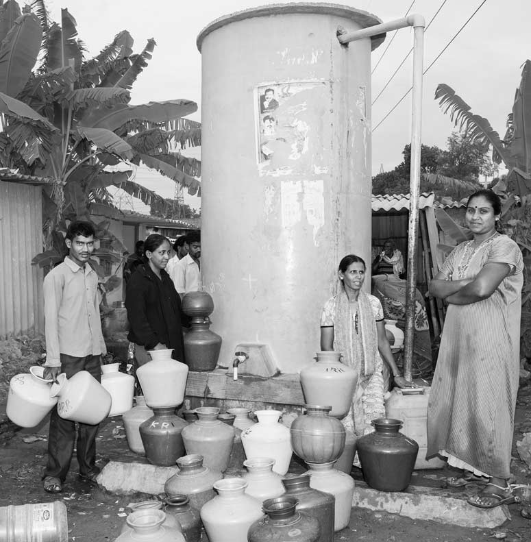 Mumbai – the commercial capital of India –faces a large gap between water demand and supply. In an effort to improve the situation, the civic body BMC launched the ‘Sujal Mumbai Abhiyan’ in 2007 to ensure contamination-free potable water supply which improved the possibility of water access even in the hitherto unserved areas. The tank shown in this photo was installed as a public water source under this campaign, promising the women in this informal colony with improved access to water. However, the tank lacks a piped water connection, and is instead regularly filled by a tanker. Despite these arrangements, the women residents are still denied access to this public water source since some dominant individuals of the locality have authoritatively captured it, reserving the water for themselves or even making a personal profit by selling out the water. Despite these protests, no action has been taken by the authorities against the miscreants and water access has not been restored to the affected women.