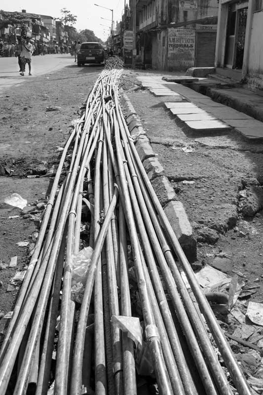 Pipes leading to group water connections in informal settlements in Mumbai, Maharashtra