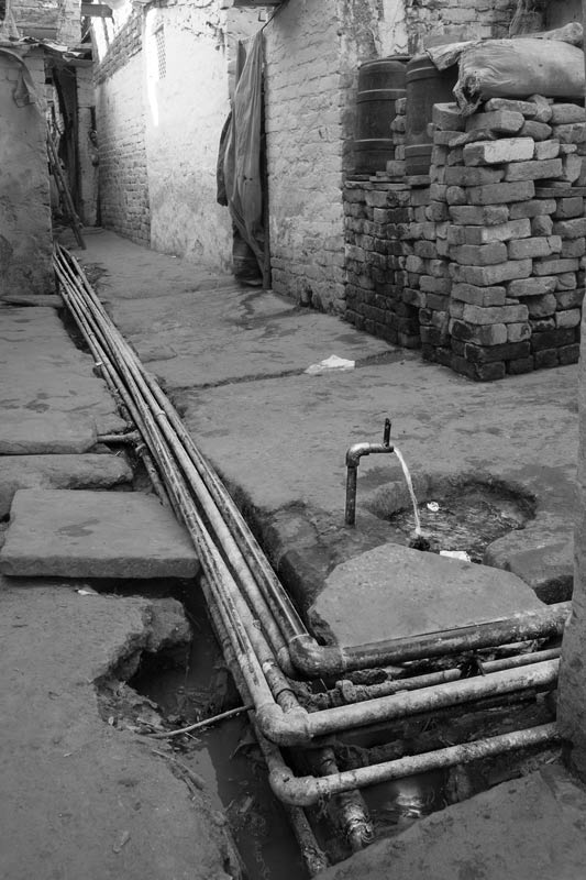 Inequitable water supply is a major concern in many cities and urban areas where those living in the unplanned informal settlements have to bear the brunt. In many cases these colonies are served through community tapstands, tanker supplies or group connections, but these options are still inequitable since the per capita water availability remains very low, besides the hardships imminent in collecting water from such alternatives. There is need for a stronger political will and more realistic planning in the cities so that greater equity can be ensured as seen in this photo, and all urban dwellers can enjoy household level water connections.