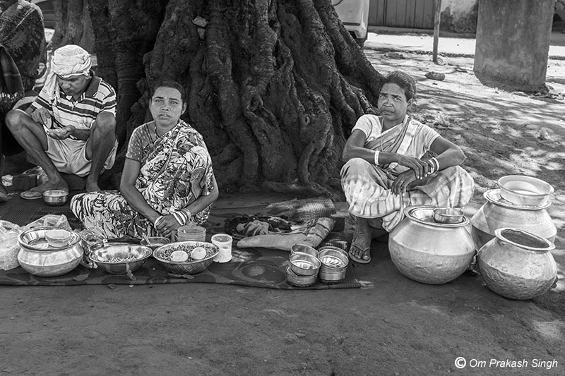 Women vendors selling locally prepared food items in a village market in Khunti district