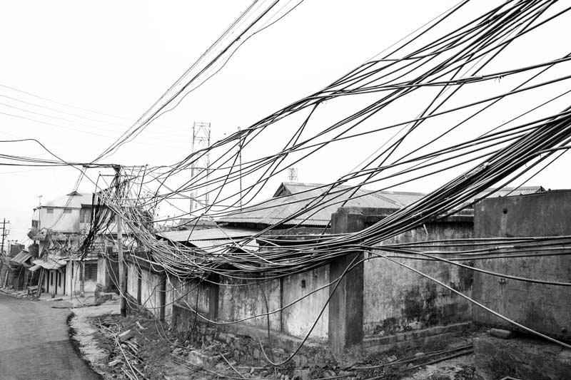 In the absence of any supporting infrastructure, the water cables are just bundled together and made to hang untidily over and between buildings, imparting an ugly look to the city.