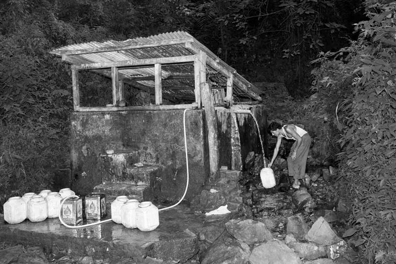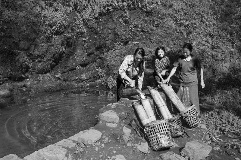 A spring-fed tank in use for drinking water collection in Kohima district, Nagaland