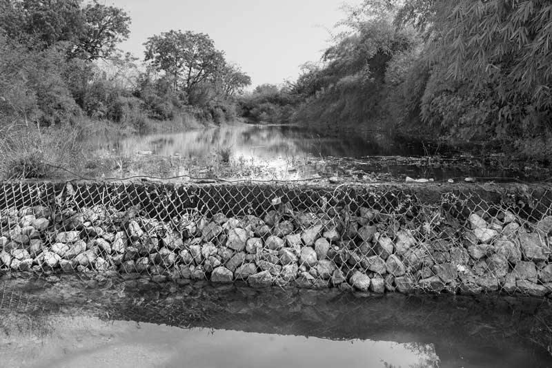 A ‘gabion’ as a ‘nala’ (drain) bund helping in water conservation and groundwater recharge in Ahmednagar district, Maharashtra