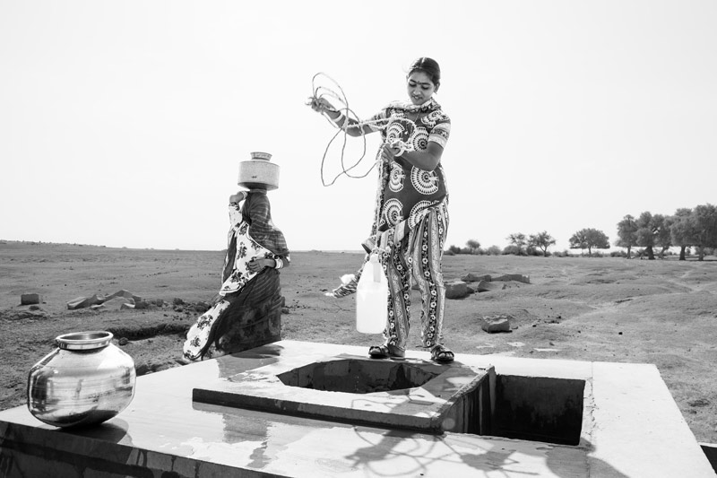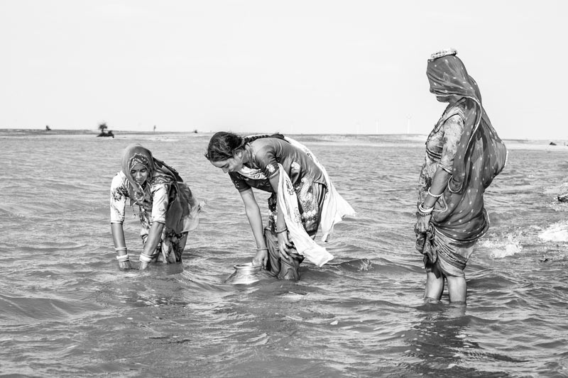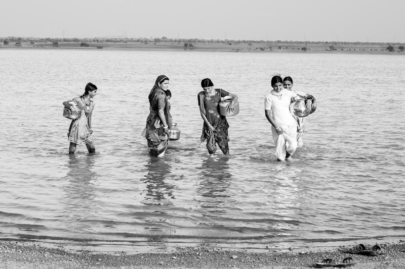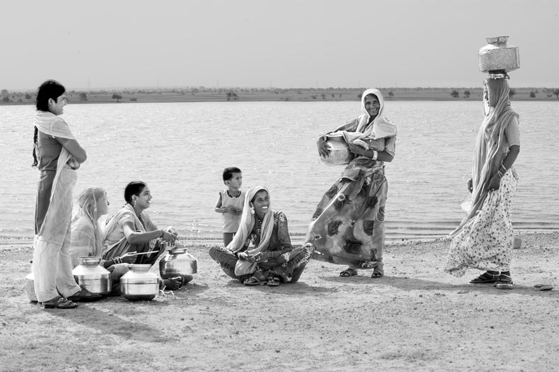 Viprasar is not only a place for fetching drinking water, but for the women and girls its cool shore amid the warm sand also serves as an important social venue. They often come in small groups to collect water and spend some time on the shores, gossiping or discussing important issues or simply enjoying moments of leisure.