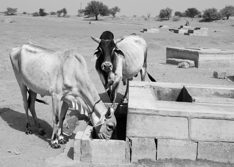 Cattle drinking water at a 'kheli' in Viprasar