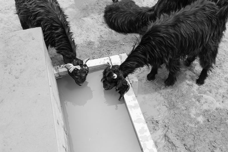 Goats drinking water at a 'kheli' in Viprasar
