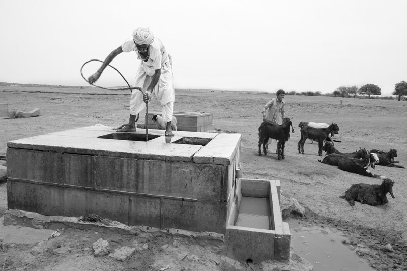 The Viprasar taanda is not only a source of drinking water for human populations, but also serves the animal wealth of Netsi and the neighboring villages. Every beri has a ‘kheli’ on one side which is a small shallow tank into which water from the beri is filled for the animals. Netsi village has a huge animal population of more than 16,000 including sheep, goat, cattle and camel, the drinking water needs of which during the dry season is fulfilled by the Viprasar beris. During and for some months after the rainy season, surface water collected in smaller ponds and pools is used for animals.