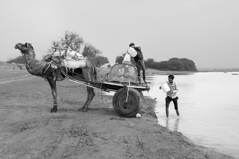Though the most common mode of water collection from Viprasar is manual procurement by women and girls, sometimes drinking water is also obtained by men in bulk using camel carts or other modes of transport. Though meant exclusively for drinking, this water may be used at home or sold within the village or outside to families that lack manpower or face other limitations in procuring the water directly. During the winter months when it is quite cold in the desert, men may assist women by fetching water in bulk in a similar manner.
