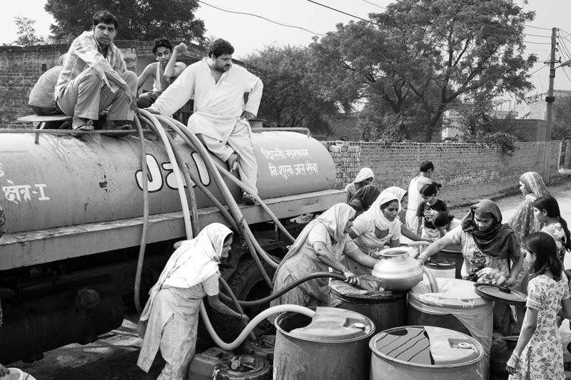 Collecting weekly water ration in a village in South-West district, National Capital Territory of Delhi