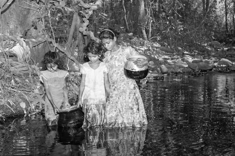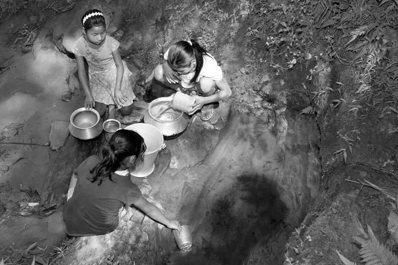 Access to safe drinking water can be a problem for communities living in comparatively isolated pockets. The girls portrayed in this photo reside in a small habitation nestled in the forests where access to safe drinking water sources has not been made available. Consequently the families have to procure drinking water from a forest stream. While there is no problem in terms of availability, significant concerns exist regarding physical access since water has to be carried over a considerable distance through the rugged forested terrain. Further, snakes, scorpions, carnivorous animals, etc. pose physical threat while carrying water through the forest. Also, water quality is an important concern due to the open nature of the source and the manner of handling since water is collected by physically entering the water body.
