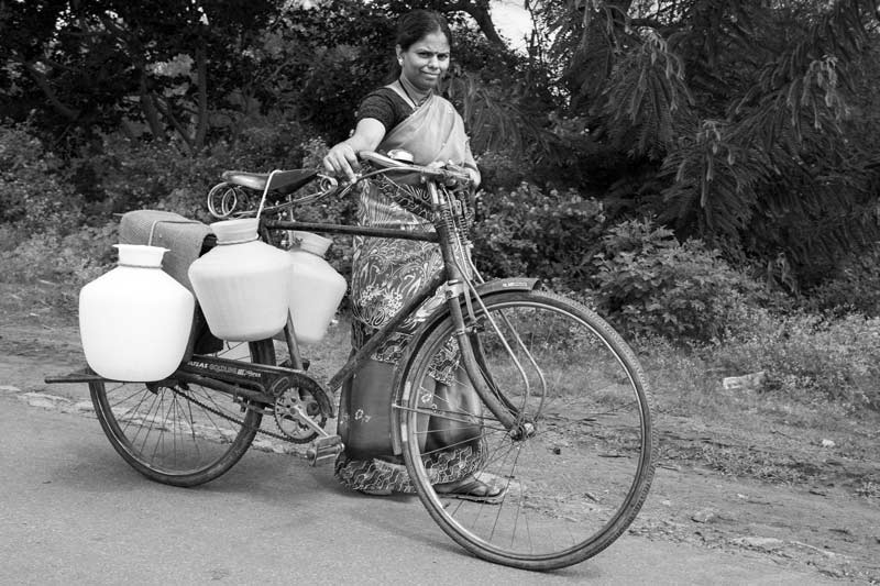 Carrying family’s drinking water ration for the day in Bangalore Rural district, Karnataka