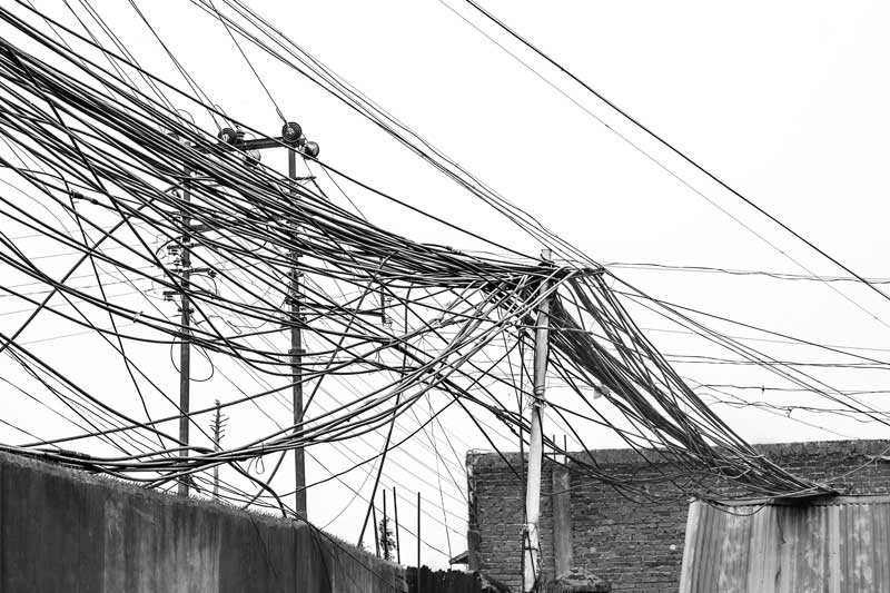Water cables hanging dangerously over electricity and telephone poles in Kohima city