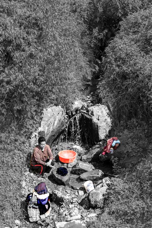 Performing laundry at a distant stream in the forests along Dimapur-Kohima National Highway