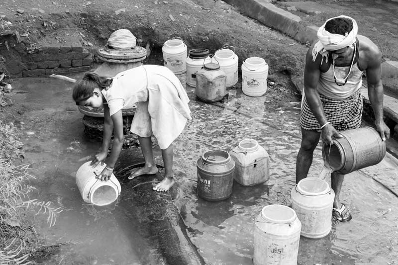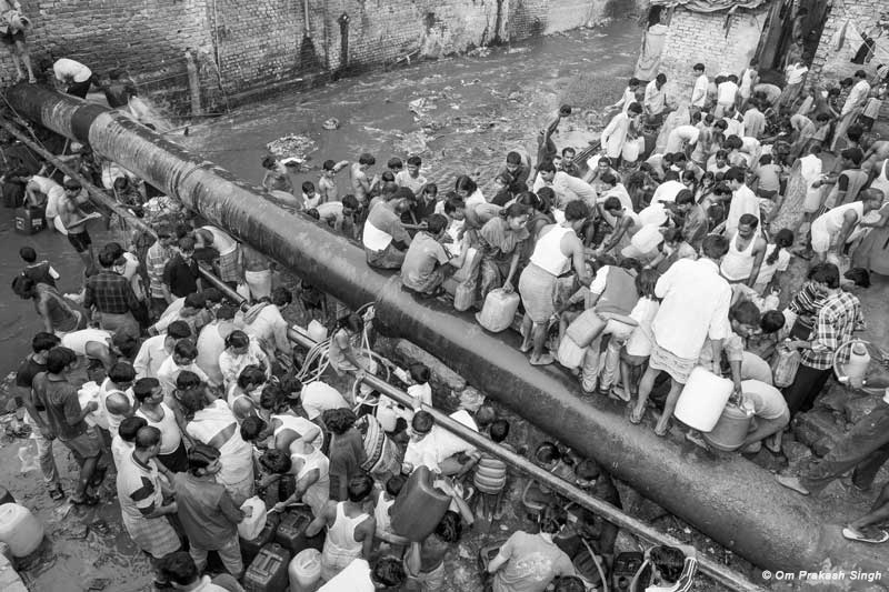 Delhi is one of the biggest metropolises in the world with a population of around 17 million, but nearly half its people live in slums and unauthorized colonies without adequate civic amenities. In this colony, very few have a drinking water source at home, while others have to depend upon leakage from a pipeline that passes close by but does not provide water to this colony. The people are collecting drinking water from this leakage after descending down a wastewater drain over which the pipeline passes, which itself raises serious health concerns. The water remains in the pipeline for a limited period and people have to rush for getting their share for the day, an exercise in which many women, men and children also slip and fall, getting injuries.