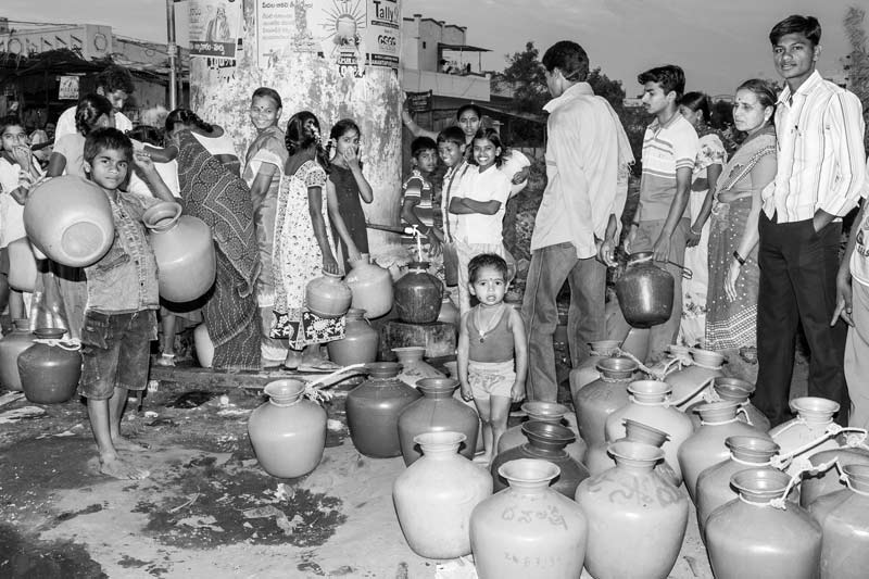 Queueing up for drinking water at a public standpoint in Bengaluru, Karnataka
