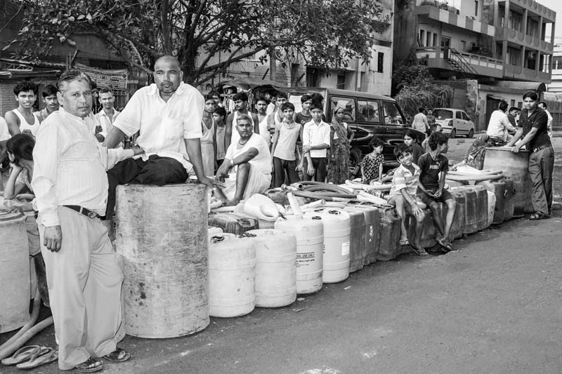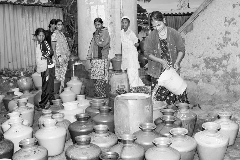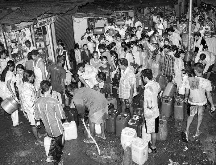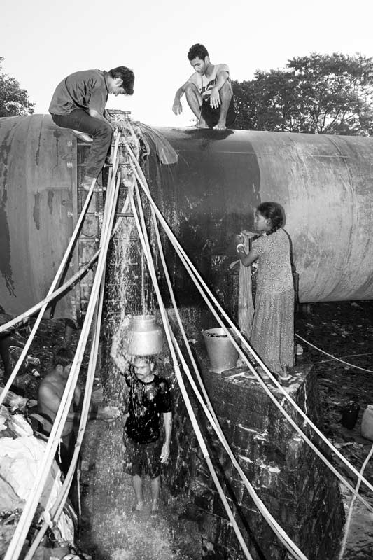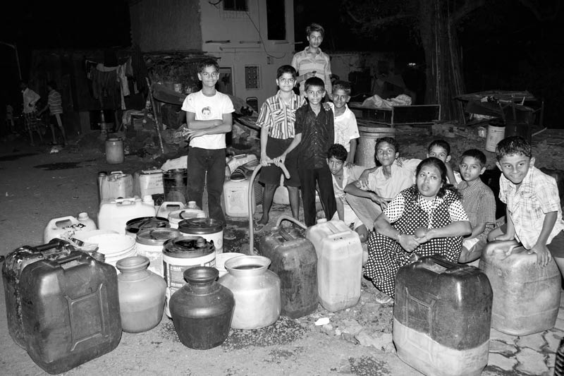 In a number of unauthorized colonies in Delhi, drinking water needs are fulfilled through tankers. However, the tanker supply can be highly irregular. Though a water tanker is supposed to serve the colony shown in this photo every morning, the time is not really fixed, making men, women and children wait endlessly, wasting valuable productive time. Sometimes, the tanker misses its trip, causing great inconvenience. Since water is an essential resource, in such a situation the residents may be forced to buy drinking water or procure it from greater distances.