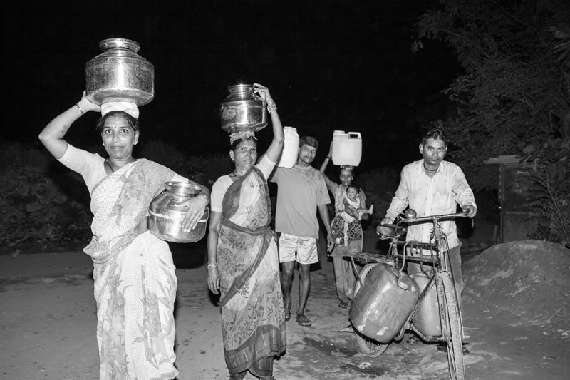 Returning with water loads in the dark from a distant source in Mumbai, Maharashtra