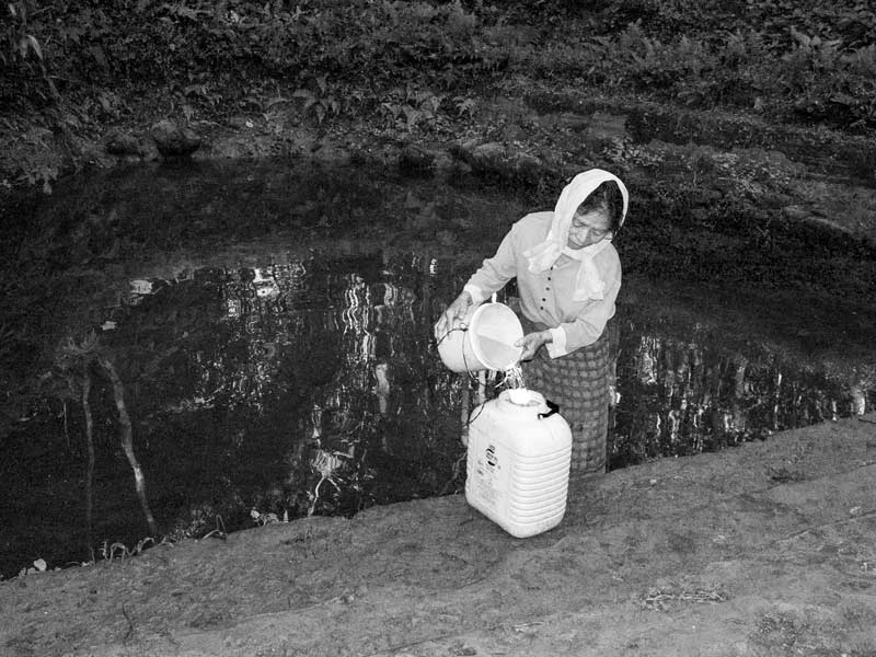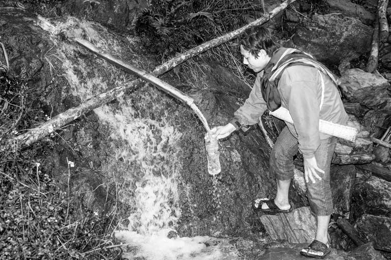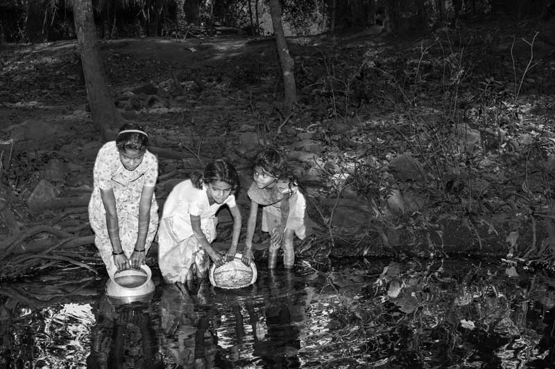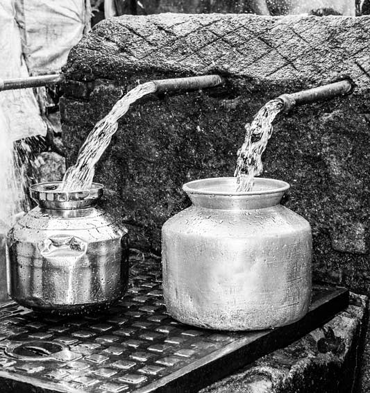 Drinking water is also taken directly from rivers and streams in the absence of any other source. Drinking water being collected from a forest stream in Chittoor district, Andhra Pradesh