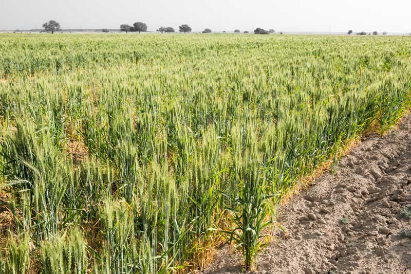 Chattar Singh inspecting gram crop (chana) cultivated in Derasar khadin