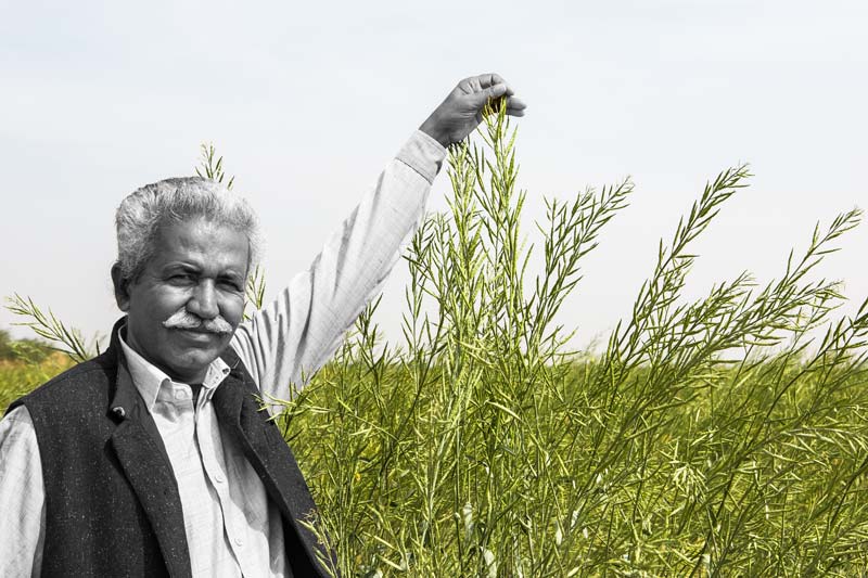 Chattar Singh amidst matured mustard crop sown in Bijrasar khadin