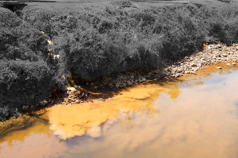 Untreated acid mine drainage being released into Tipong river in Makum Coalfield in Tinsukhia district, Assam