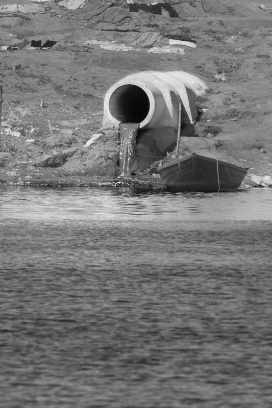 Untreated sewage being discharged into river Ganga through the Khirki Drain in Varanasi, Uttar Pradesh