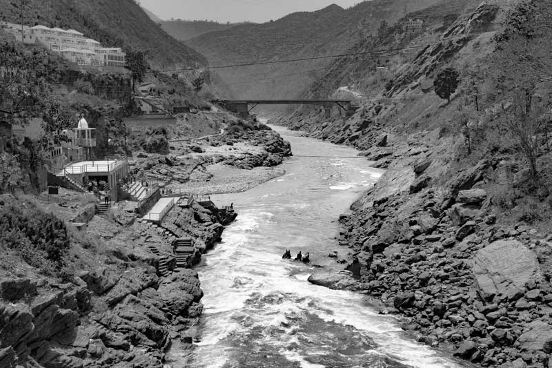 Confluence ('sangam') of rivers Bhagirathi, Alaknanda and Saraswati at Devaprayag, Tehri Garhwal district, Uttarakhand