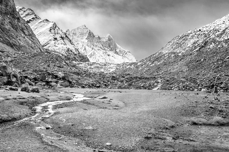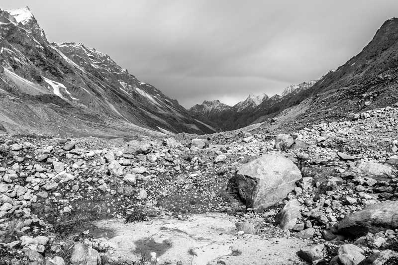 A view of Bhagirathi valley from where Gaumukh and Gangotri glacier receded in the 1990s in Uttarkashi district, Uttarakhand