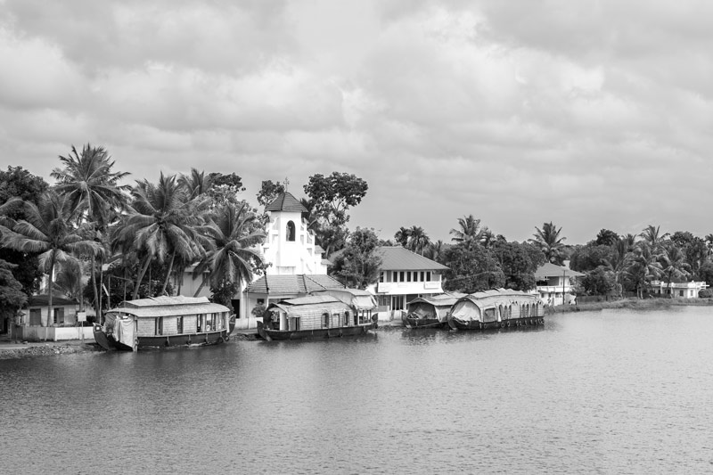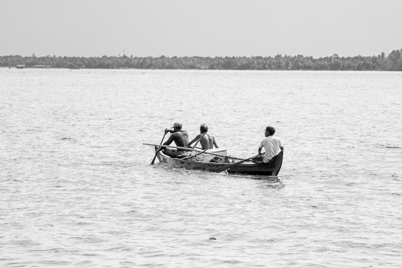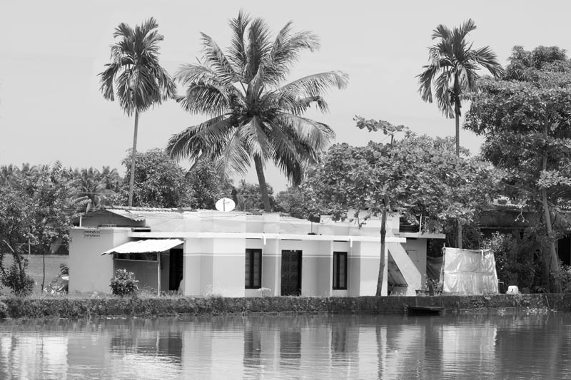 This photo story has elucidated how living below the sea level in the wetlands of Kuttanad has played havoc with its water resources in terms of both quality and quantity. Undoubtedly, colonization of the wetlands and creation of polders for agriculture itself signified an onslaught on the water wealth of the wetland. However, this bountiful wetland was able to sufficiently provide for people's 'needs' through all the three basic ecosystem services, namely, provisioning, regulating and cultural, with water as the central resource. The ecosystem services could continue efficiently until these remained in balance with nature, seen for example, in terms of synchronization of cropping cycle and varieties with prevailing hydrological regimes, use of organic farm inputs, low population pressure, and a 'need-based' economy in general. However, transition from 'needs' to 'greed' in the name of economic development especially in the post-independence period, led to major transformations in the waterscape, which have made long-lasting adverse impacts in terms of both quality and quantity of water. These include construction of the Thanneermukkom Saltwater Barrier and the Thottapally Spillway and introduction of high-yielding varieties of paddy under the 'Green Revolution'. Industrialization in the region, expansion of rural and urban settlements, and rise of backwater tourism dealt further blows, further encroaching the water bodies and adding to the pollution load. The situation has worsened to the extent that though people live in beautiful houses, in many pockets, they cannot even enjoy the basic human rights to water and health because the drinking water locally available is polluted. Similarly, floods regularly wreak havoc because construction of roads, culverts and excessive growth of weeds in the watercourses have blocked the natural water drainage systems. Quality and quantity problems of water have in turn led to decline of the aquatic fauna. Seen cumulatively, the status of water resources in the Kuttanad wetlands has reached a stage where the traditional livelihood comprising agriculture, fisheries in natural waters and other associated activities are no longer economically viable. There is general agricultural distress and inequity and poverty is making inroads. Development of backwater tourism is further deepening the crisis through multiple pathways connected to water.