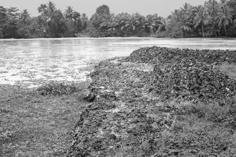 For improving agricultural production below the sea level, an important engineering work constructed in Kuttanad is the Thanneermukkom Saltwater Barrier shown in the photo above. It is a 1,252 m long structure constructed at a narrow segment of Vembanad Lake, between Thanneermukkom and Vechoor, functional since 1974. It was designed to prevent salinity ingress in the dry season and retain freshwater from the inflowing rivers into Kuttanad region to enable safe punja crop and intensify viruppu crop of rice. With the gates remaining closed during December to March, the barrier has been relatively successful in reaching its goal, but not without severe ecological consequences triggered by changes in the natural hydrological processes and salinity regimes. An important outcome is the elimination of tidal flushing which has exponentially enhanced pollution levels in the soil and water bodies of Kuttanad.