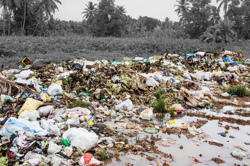 Solid waste piled up in fallow marshes in Alappuzha district, Kerala