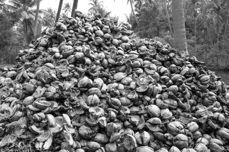 Coconut husk piled up for industrial processing in Kottayam district, Kerala