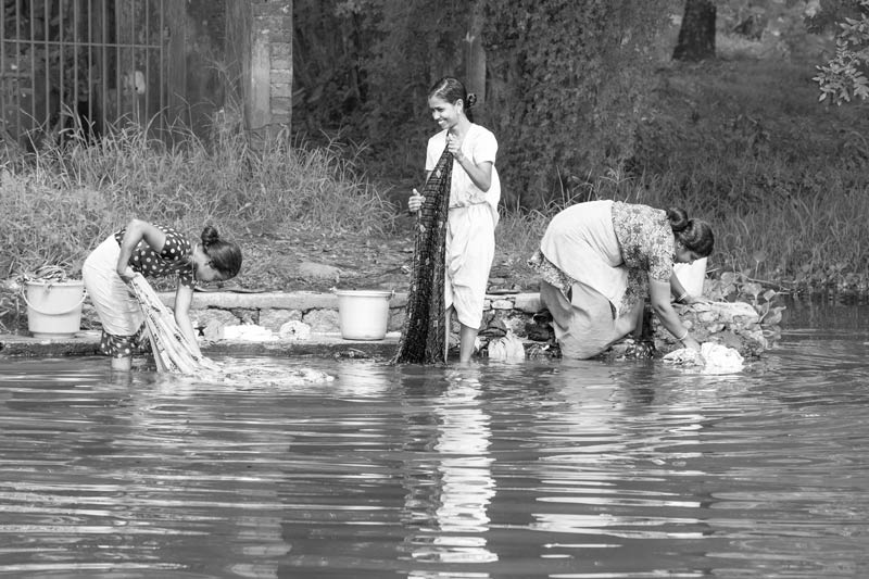 There is a high dependence on the backwater canals for daily chores in Kuttanad, especially in areas reclaimed from the lake bed. It is a common sight to see people bathing, doing laundry, and cleaning utensils along the embankments, a glimpse of which is presented in the above photo. These activities contribute significantly to microbial and chemical contamination of water. There is also high coliform count due to poor sewage disposal arrangement in these settlements, with toilets in many households having direct outlets into the backwater system. Further, large amounts of raw sewage from towns like Alappuzha is discharged directly into the backwaters. Since surface- and groundwater are interconnected resources, this has led to overall degradation of drinking water quality in Kuttanad, the consequence of which becomes visible in the form of frequent outbreaks of epidemics like diarrhoea and increasing cases of filariasis, schistosomiasis, typhoid, jaundice, gastroenteritis and cholera.