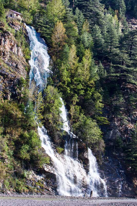 The Himalayas are criss-crossed by numerous streams and springs, fed by rainfall, seasonal snowmelt or even glacial melt. These help nourish nature, which in turn helps flora and fauna to flourish on the mountains. Sometimes, these form waterfalls on the slopes, as shown in the above photo. Later the water of these streams and springs drains into rivers, adding to their water volume. Due to vegetation and root mats, some part of this water is also captured in the soil as 'green water', helping recharge groundwater. Some of this groundwater further contributes to the river flows along slopes and downstream.