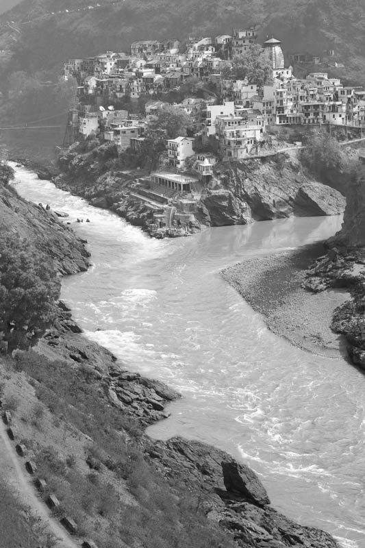 Confluence of rivers Bhagirathi and Alakananda at Devaprayag in district Tehri Garhwal, Uttarakhand