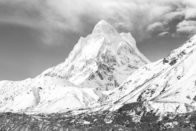 Himalaya means "abode of snow" and after Antarctica and Arctic, the Himalayan range is home to the third-largest deposit of snow and ice on Earth. Its high peaks remain permanently covered with snow and ice and there exist numerous glaciers in these ranges which cover an area of 40,563 sq. km. on the Indian side alone. Shivling, also known as the 'Mahadev Ka Linga', is part of the Gangotri Group of mountains located near the Gangotri glacier in Uttarakhand. It is it is the most revered peak in the group, its name refering to its status as a sacred symbol of the Hindu god Shiva. Though appearing as a single pyramid, Shivling is actually a twin-mountain pinnacle, perched high at an altitude of 6,543 m. It is a steep rock peak, a part of which remains perpetually covered by ice, while another part displays bare rock.