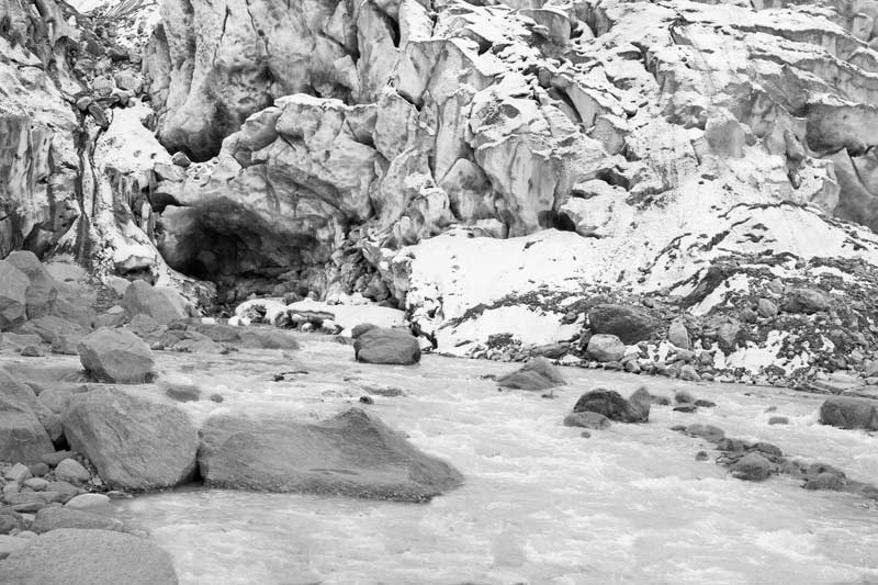 River Bhagirathi emerging from Gangotri glacier at Gaumukh in Uttarkashi district, Uttarakhand